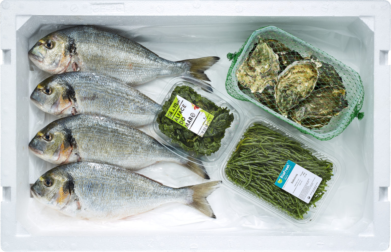 O Cabaz das Rias, ideal para 4 pessoas, levará à sua porta a riqueza e frescura das rias de Portugal. A Dourada de esteiro e as Ostras são provenientes da mais Formosa Ria do Algarve, assim como a Salicórnia. As Algas frescas, trazem o aroma da Ria de Aveiro.